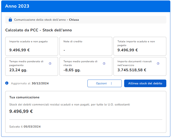 Stock di debito residuo 31.12.2023